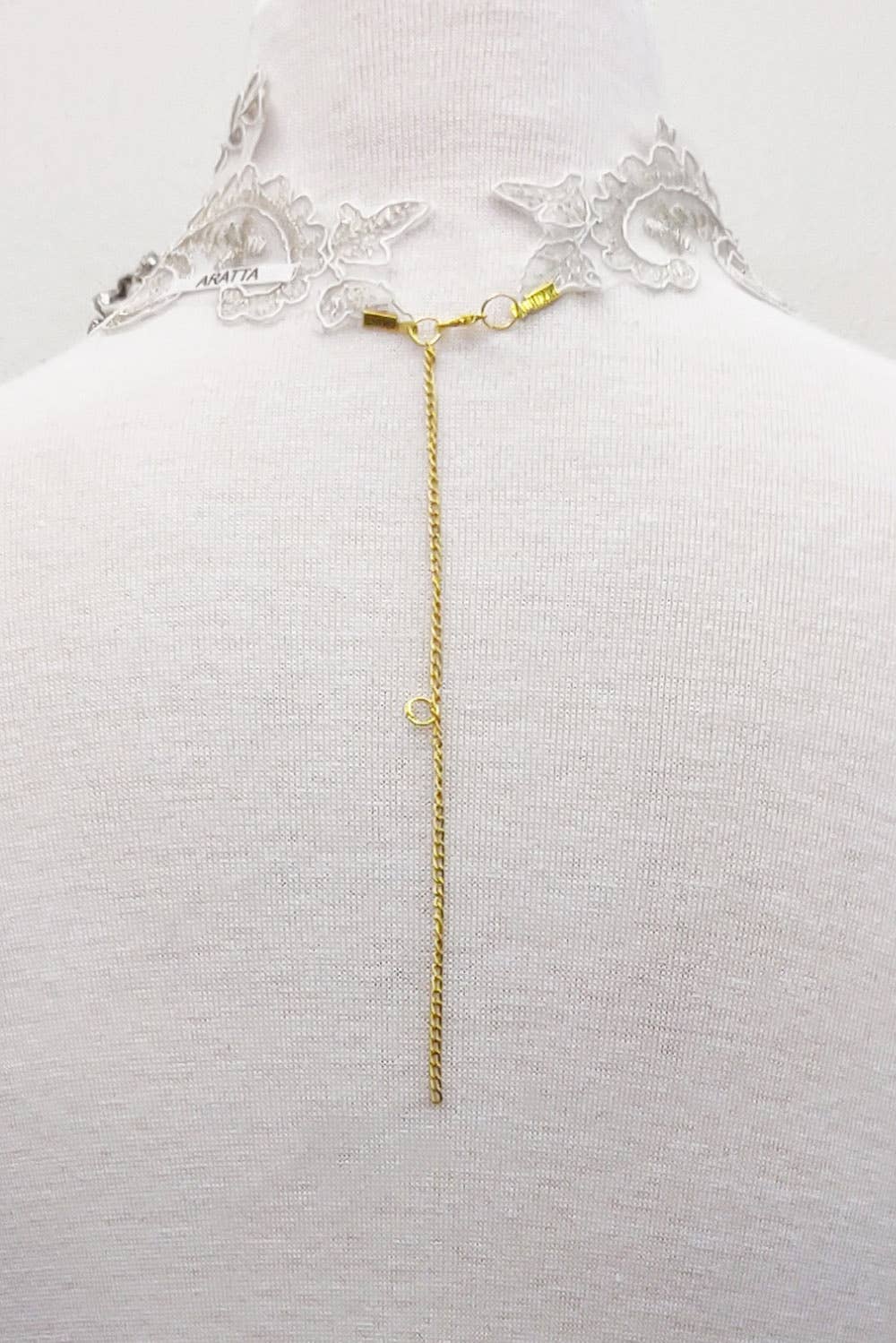 * Lace trim embellished floral crystal brooches necklace, closure with antique gold chain & lobster claw clasp