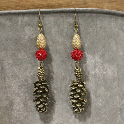 The Primitive Peddler Love For Cardinals & Pine Cones Dangle Earrings