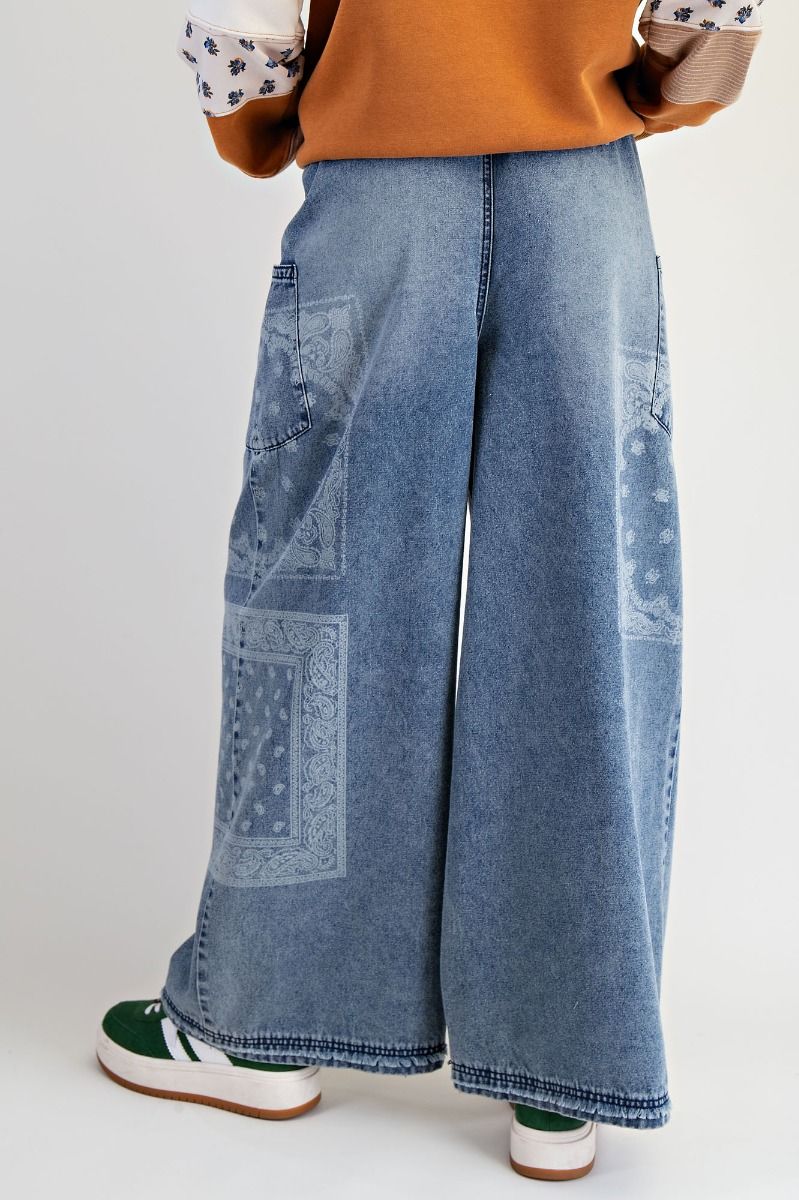 • Load image into Gallery viewer, Easel Patchwork Printed Washed Denim Pants