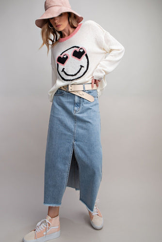 Easel Plaid Mix Daisy Patch Oversized Knit Top