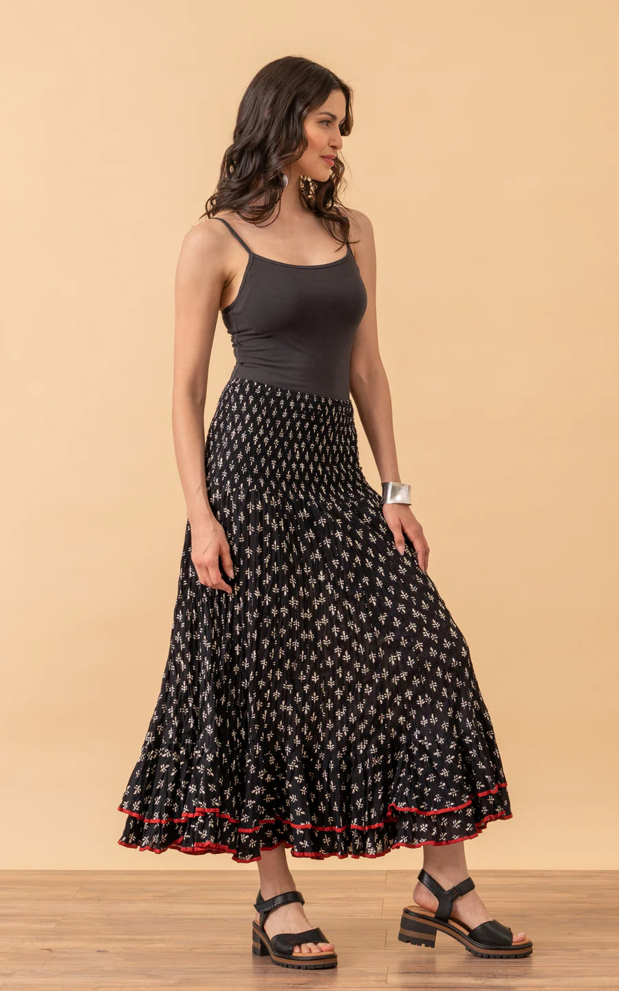 Hand carved wooden blocks are used to manually print intricate designs on the yardage used in our collection.
