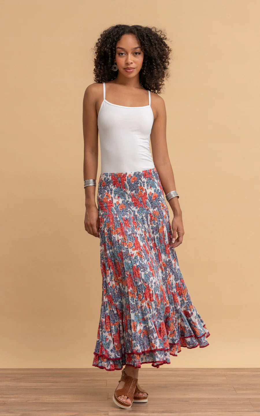 The textiles used in this collection are created utilizing hand block print, an ancient method of textile printing.