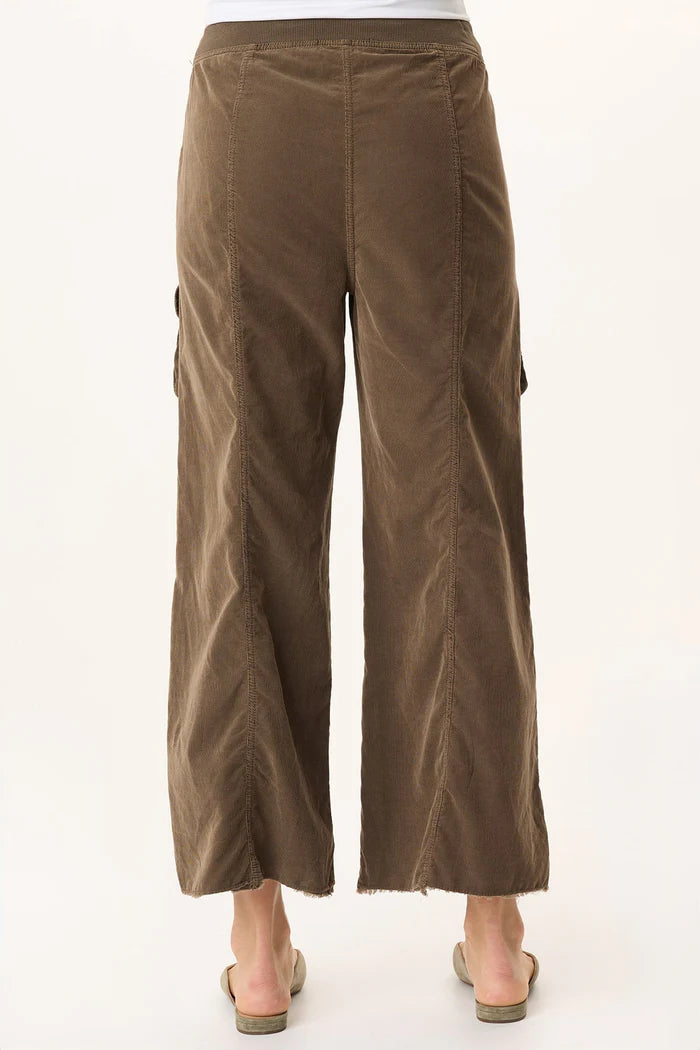 A wide-leg fit and raw-edge hem bring on the fun to this drawstring pull-on waist style. Layered cargo pockets and flapped tabbed pockets plus antique brass hardware round it all out.