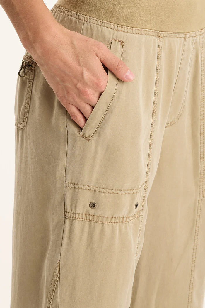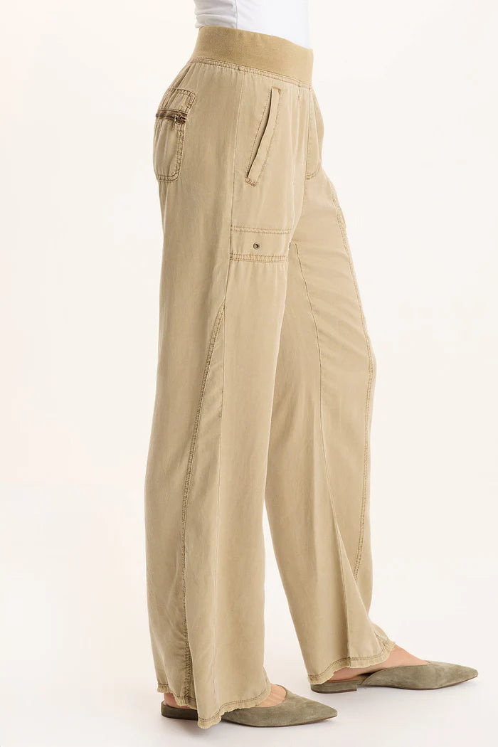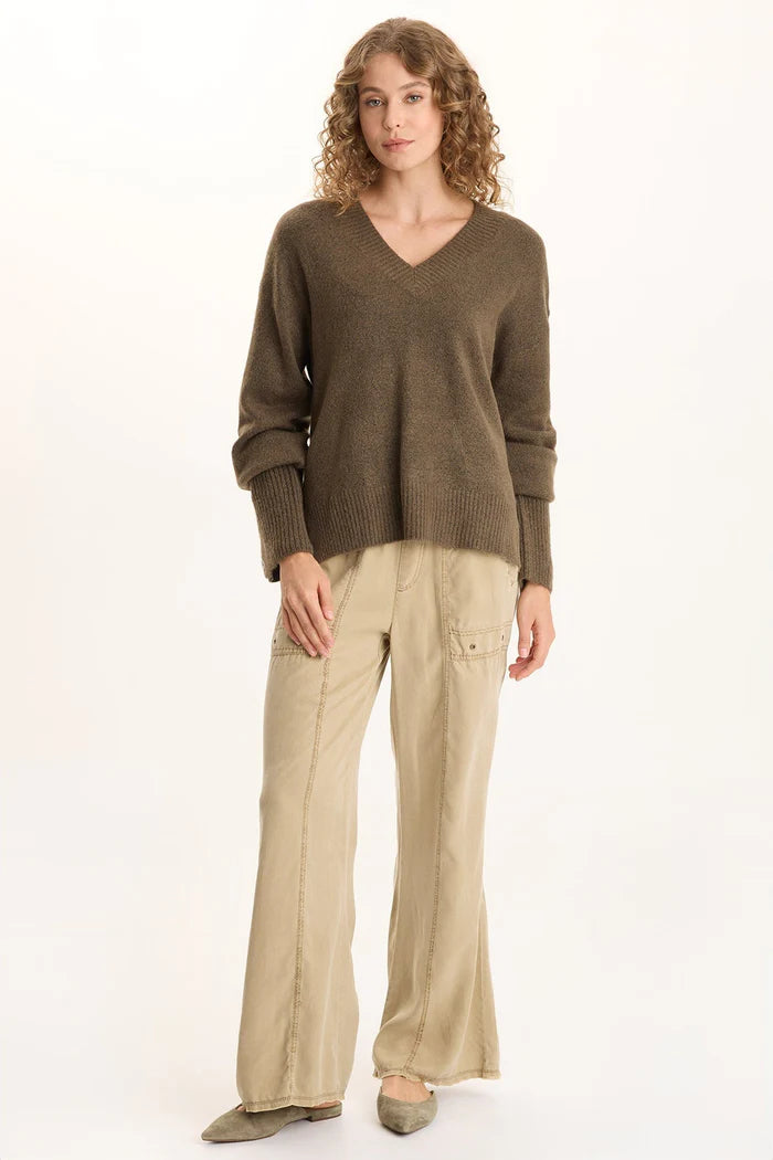 A pull-on waist and faux fly, roomy hip pockets with brass snap details, and twill tape feature on this comfy yet polished long pant. A raw hem adds some edge. Lean into the rugged for a cozy, beachy look, or opt for the elevated trouser look for work or a night on the town. No matter the occasion, comfort and sophistication await when you slip into Schyler!