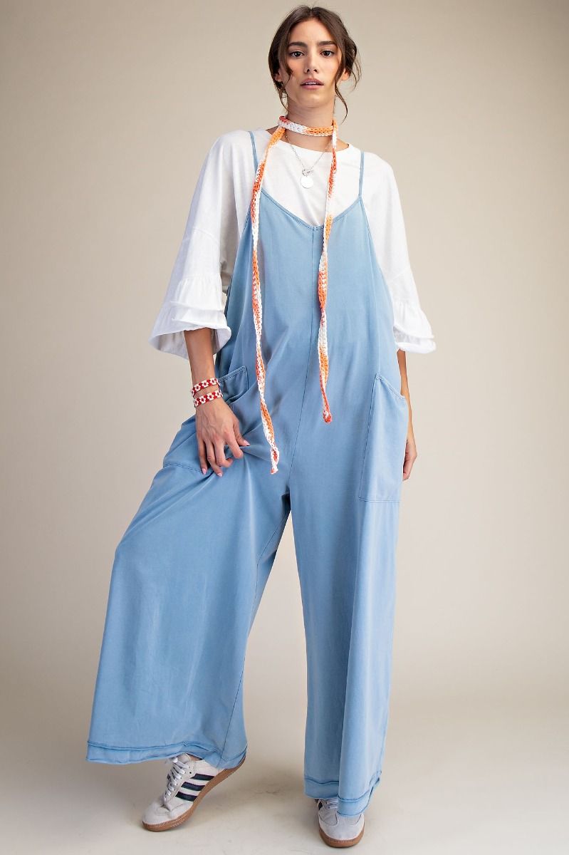 MINERAL WASHED COTTON SPAN JUMPSUITS