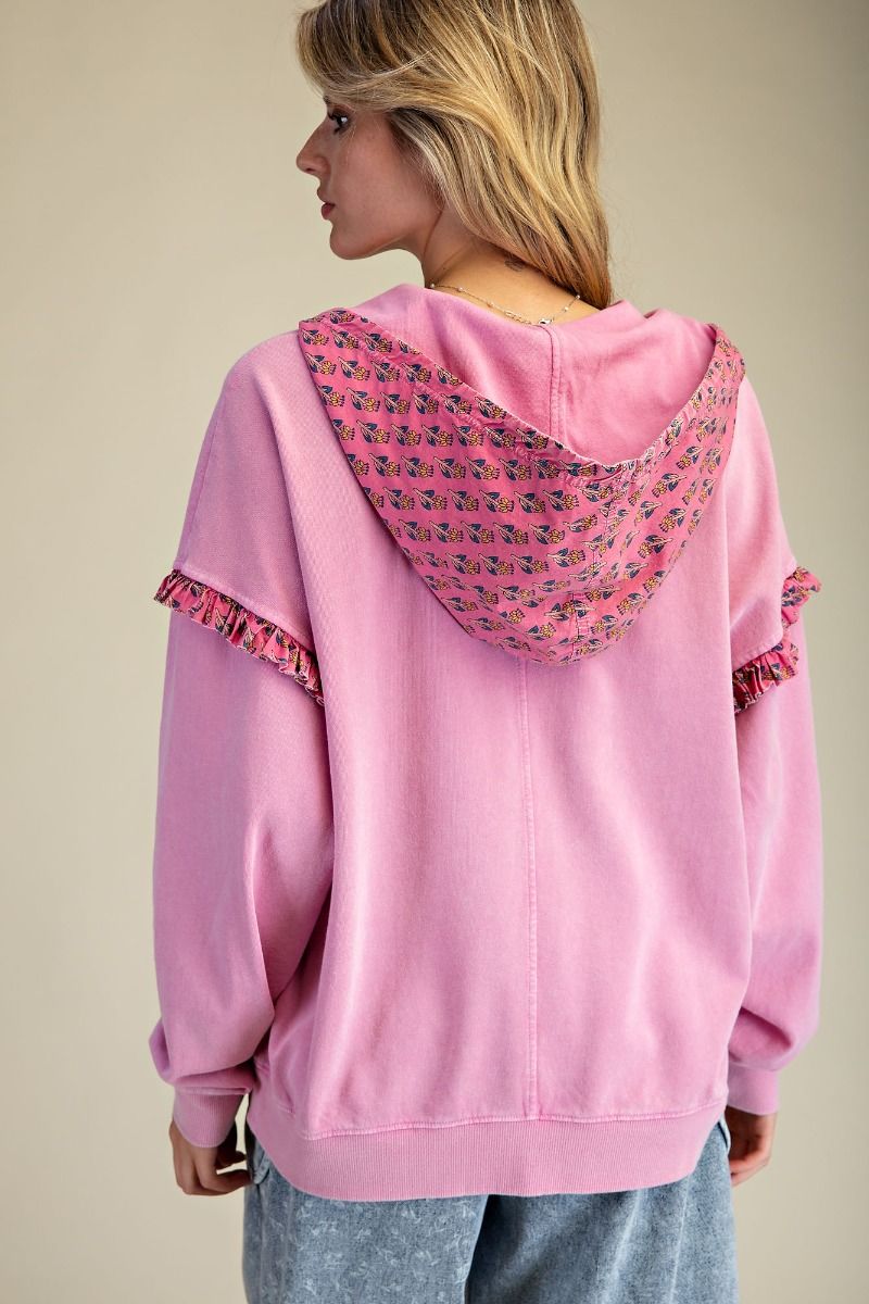 PRINT MIX WASHED TERRY PULLOVER HOODIE