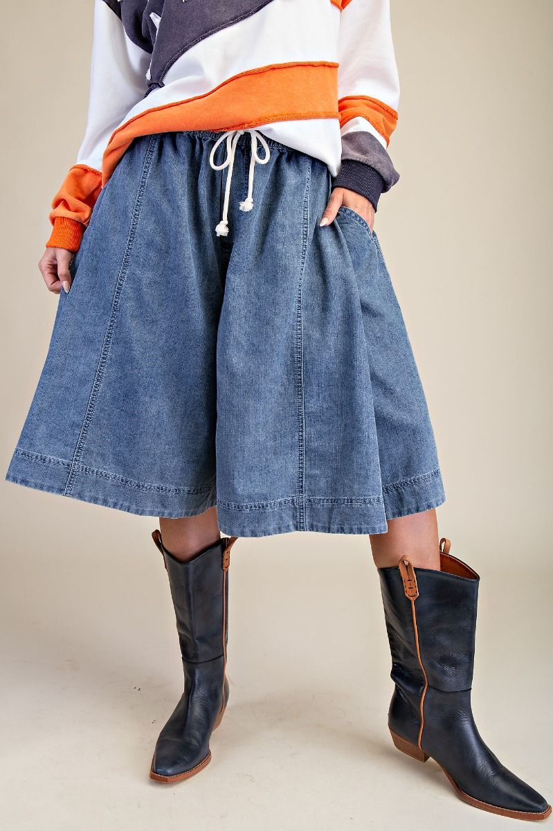Easel Washed Denim Knee Length Skirt Pants